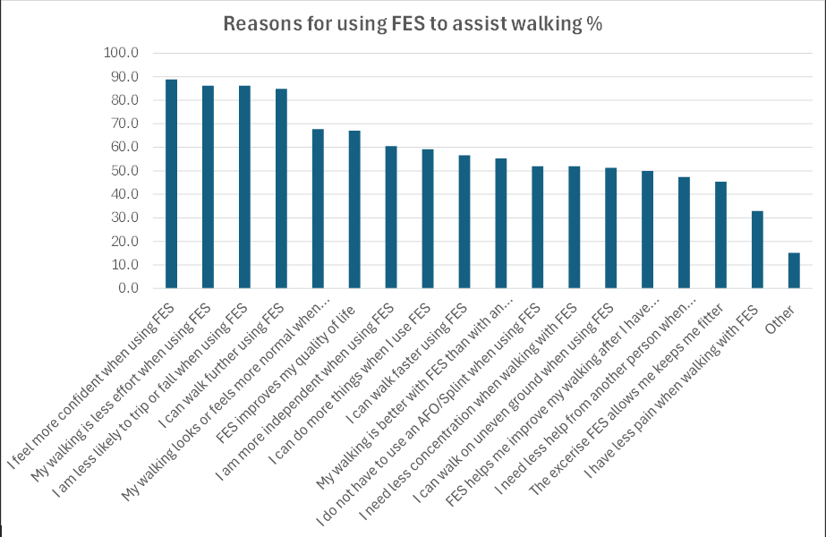 It was life changing after my stroke. I struggled with a foot drop. I used the FES for 7 months then my foot drop had improved so much I stopped using it. It helped to train the muscles, kept me moving without stumbling or tripping…